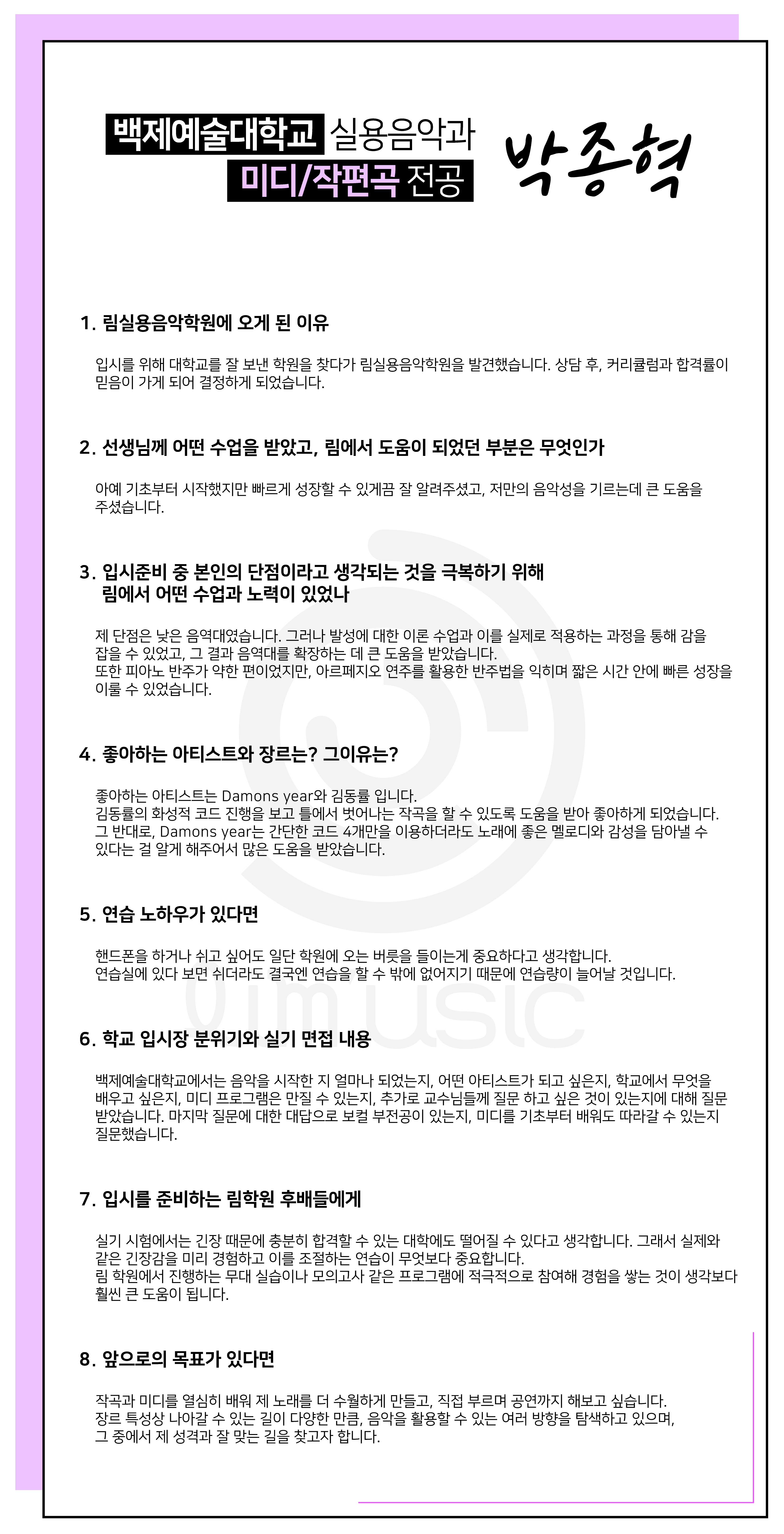 2026Çг⵵ ÇÕ°ÝÀÚ Èıâ [¹éÁ¦¿¹¼ú´ëÇб³ ½Ç¿ëÀ½¾Ç°ú ¹Ìµð/ÀÛÆí°î Àü°ø] ¹ÚÁ¾Çõ